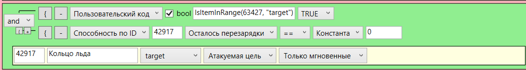 У меня не получилось как я не пробовал, выбрал пользовательский код галочка bool вставил IsItemInRange(32321, ForeachUnit)